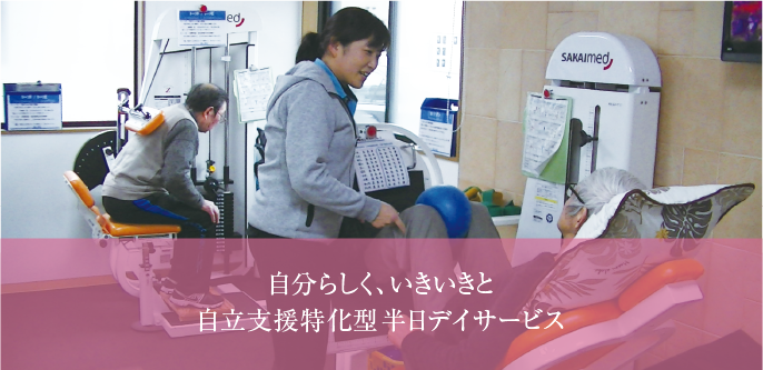 - 皆様こんにちは。リハビリデイあしすとは、リハビリ運動を中心にした半日型のデイサービスセンターです。